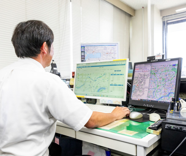 空港リムジンバスでは全車両にGPSを搭載し、車両の運行状況をリアルタイムに把握しています。過去の運行実績データを参考に、お客様へ最新の運行状況をお知らせしています。渋滞が心配なときもご利用のバスの所要時間予測を調べておけば、安心してバスを利用することができます。